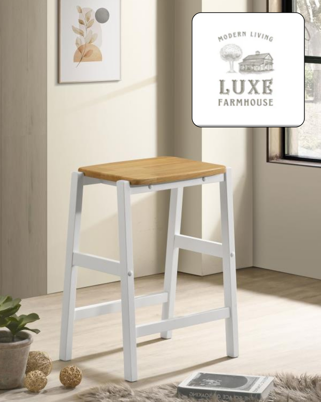 The Harper Backless Counter Stool by Luxe Farmhouse - Natural Wood & White Metal (Set of 2)