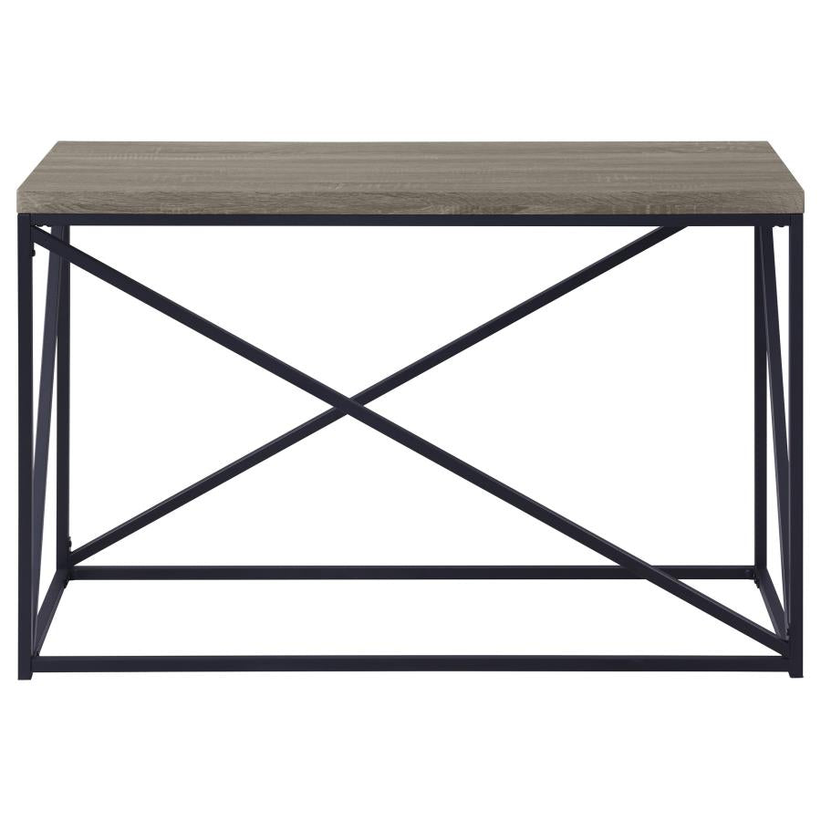 Crafted with a durable engineered wood top finished in weathered Sonoma Grey, it mimics the soft grain of aged oak while resisting scratches and wear. The black powder-coated metal base adds just the right contrast — sturdy, industrial, and grounded in simplicity. Cross-brace accents echo classic farmhouse and loft-inspired design, while the slim profile makes this console an ideal fit for narrow hallways, entryways, or behind sofas.