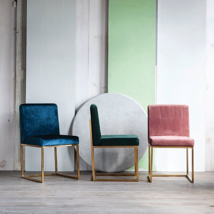 Introducing the exquisite Ermias Velvet Dining Chair, a lavish creation enveloped in luxurious velvet upholstery that exudes opulence. Each jewel-toned piece presents a captivating touch of glamour, seamlessly blending contemporary French design with the timeless allure of a brass base.