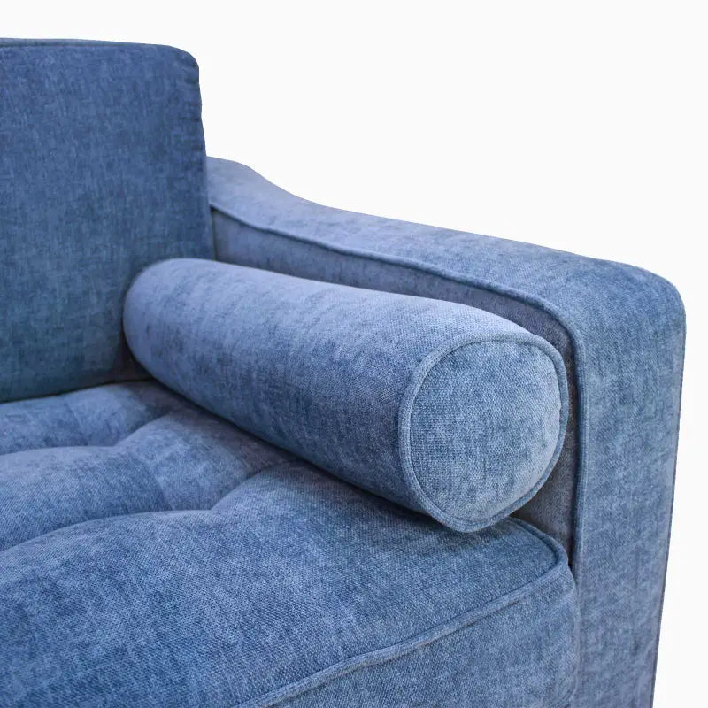 Meticulously hand-upholstered in rich, designer fabrics like Denim and Turquoise, Delano’s subtle color stories blend effortlessly into both bold and neutral interiors. Channeled fiber-fill back cushions and 2.5 lb. high-resiliency foam deliver a sink-in softness that holds its shape beautifully. Walnut-finished legs and a kiln-dried hardwood frame reinforce the piece with architectural integrity, while metal plate joinery ensures long-term durability.