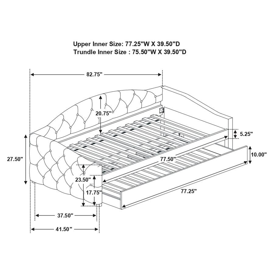 Transform your guest room or cozy nook with the Ellery Grace Twin Daybed & Trundle — a perfect blend of timeless charm and modern versatility. Wrapped in a soft, neutral grey polyester fabric, this transitional daybed is designed to complement any color palette or décor mood, from serene minimalist to warm traditional. The elegant camelback silhouette with button-tufted detailing adds a feminine, graceful touch that invites relaxation and style in equal measure.