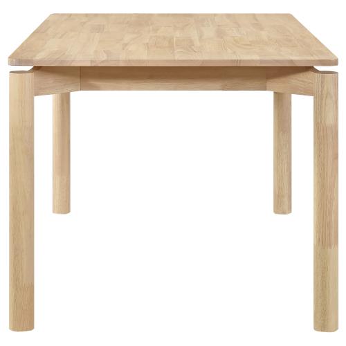The rectangular top provides generous room for meals, games, or quiet moments with coffee and a laptop. Rounded legs and softened edges offer a sense of movement and flow, making this piece especially at home in open-plan layouts or minimalist interiors. The lightly textured finish highlights the natural grain of the wood, adding warmth and organic dimension to any room.