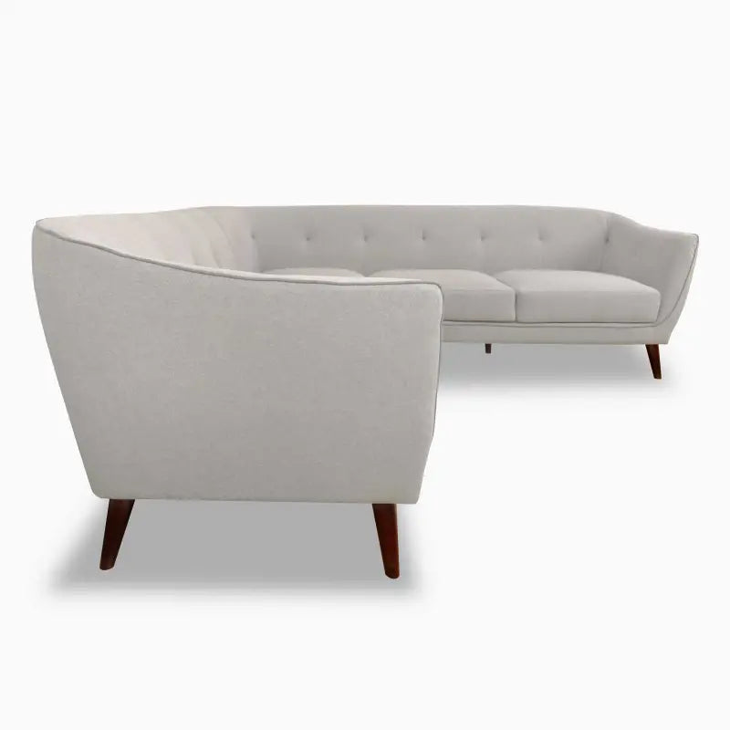 Curved to captivate. Crafted to comfort. The Solaro Curved Sectional is a daring departure from the everyday — a statement in form, texture, and intention. Its sweeping radial silhouette hugs the room and invites conversation, while precise single-welt detailing in slate grey adds just the right amount of edge to its plush velvet profile.