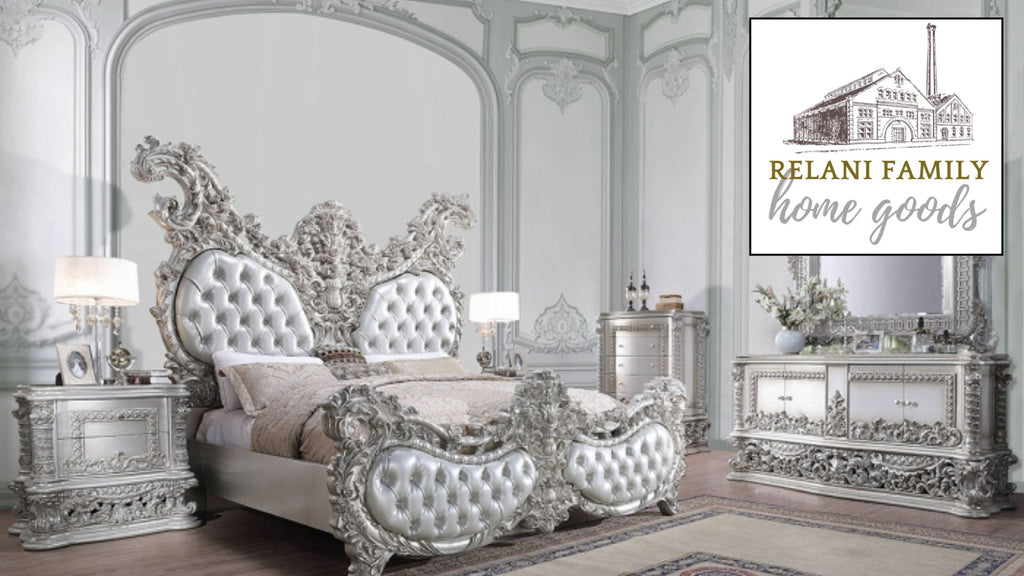 #RelaniLiving #RelaniFurniture #FranklinGrove #WoodBedroomSet #ClassicBedroom #LatishaBed #HeirloomDesign #TraditionalBedroom #CarvedWoodBed #TimelessLuxury #BernadetteBed #RococoBedroom #KingBedLuxury#ValkyrieBed #AntiquePlatinum #TuftedHeadboard #ClassicBedroom #HeirloomFurniture #LuxuryBedroomSet